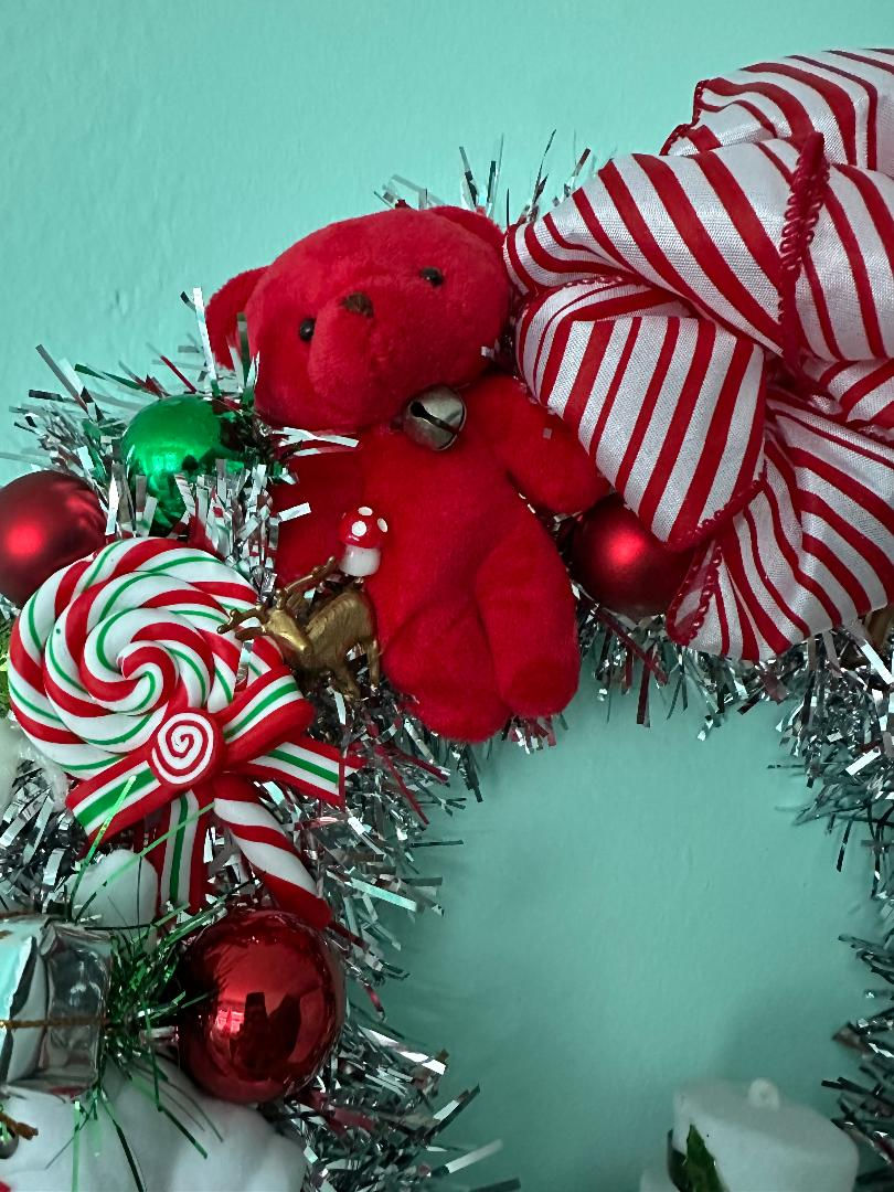 Tinsel Retro Kitsch Christmas Kewpie Doll Wreath #2